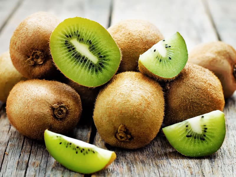 Kiwifruits are rich in fiber, which is beneficial to digestive health, and lutein and zeaxanthin, which help improve vision. Vitamin C source with twice as much as that found in oranges.