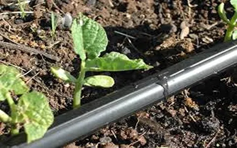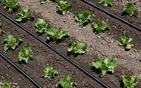 A network of thin tubes, known as drip tapes, is installed along the rows of crops.