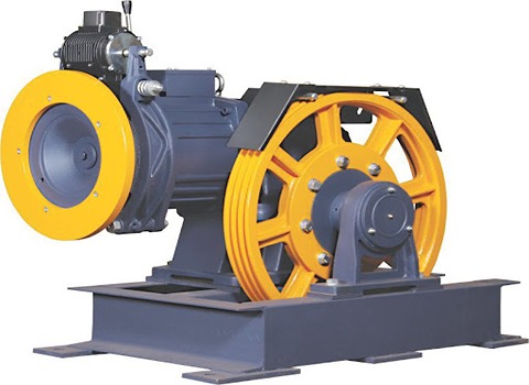 Geared traction elevators operate on a simple yet ingenious principle. A motor located at the top of the elevator shaft drives a gearbox that turns a sheave (pulley).