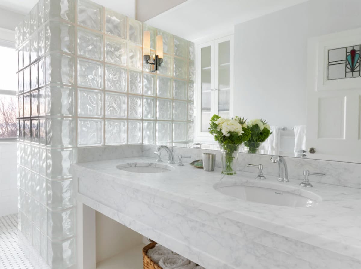 Glass bricks provide visual obscuration while admitting light.