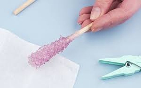 As the sugar solution cools, sugar crystals will begin to form on the skewer or string, growing larger and larger with each passing day.