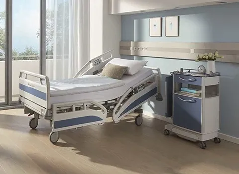 Many hospital beds come with additional features such as overbed tables, IV poles, and patient controls that allow caregivers to easily assist with daily tasks.