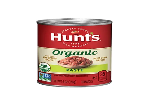 Hunt's Tomato Paste No Salt Added is a puree made from vine-ripened tomatoes that have been carefully selected and processed to preserve their natural flavors and nutrients.