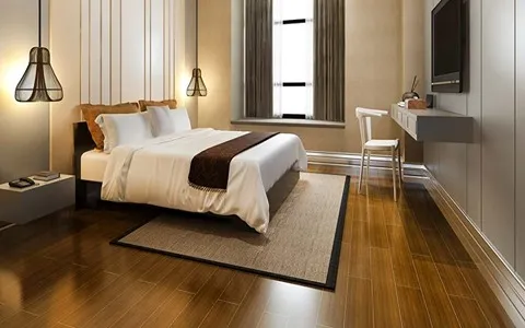 Ceramic tiles are known for their affordability and easy maintenance, making them a practical choice for bedrooms.