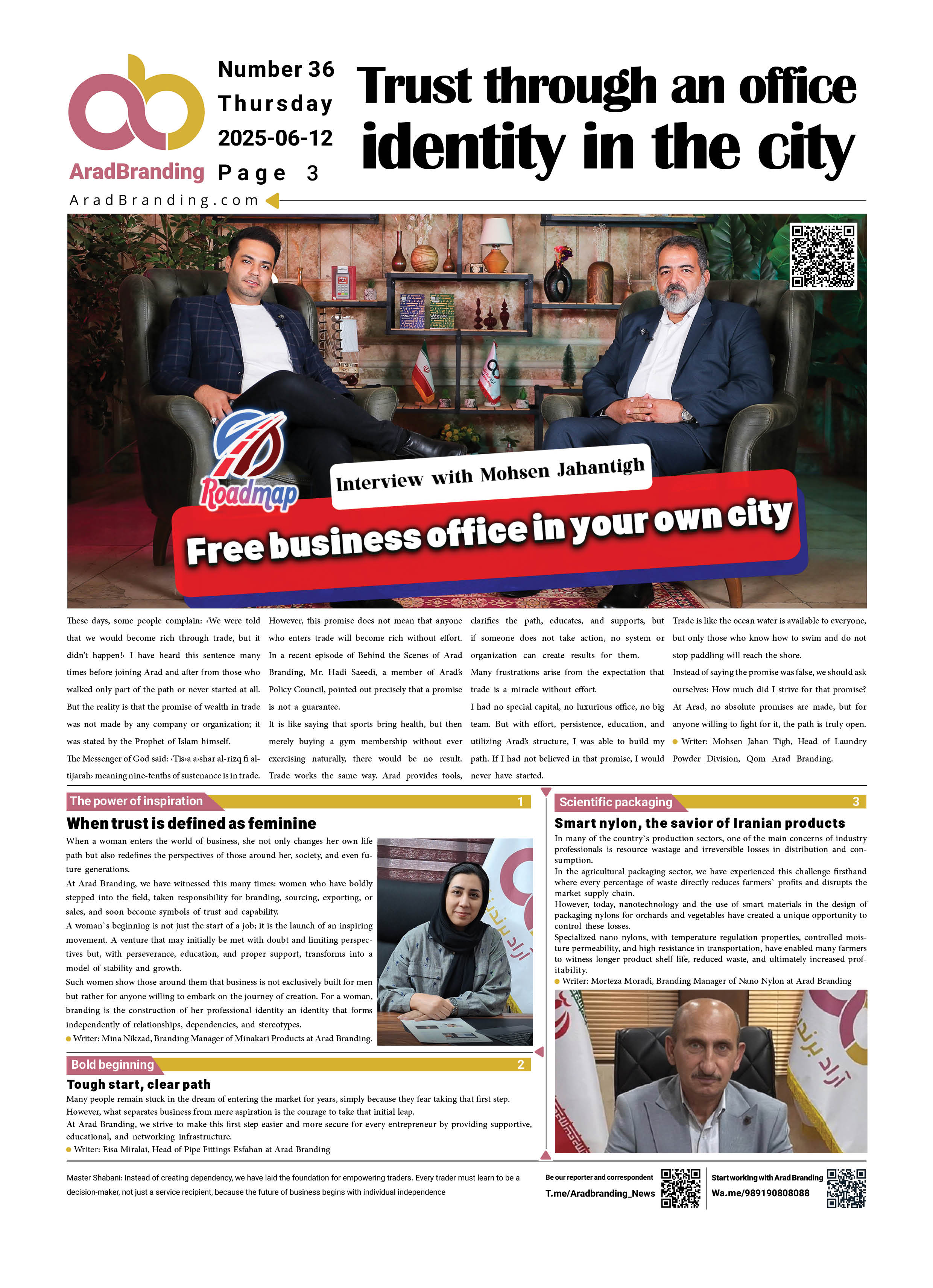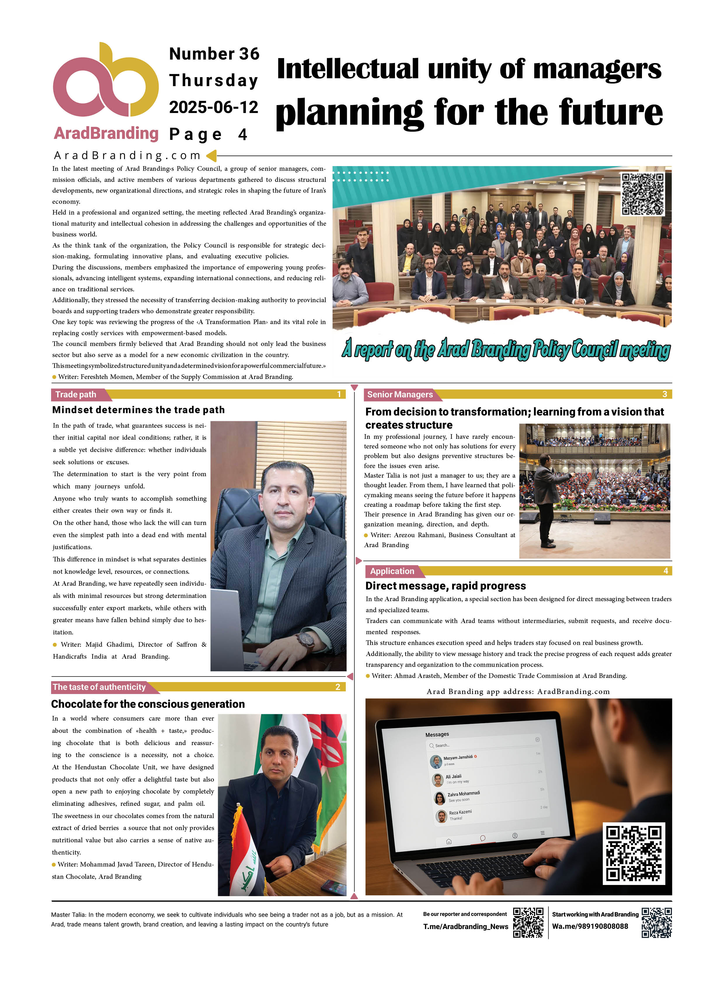 Those who wish to have their content published in Arad Branding Newspaper can contact the following Telegram ID and submit their content and images.
