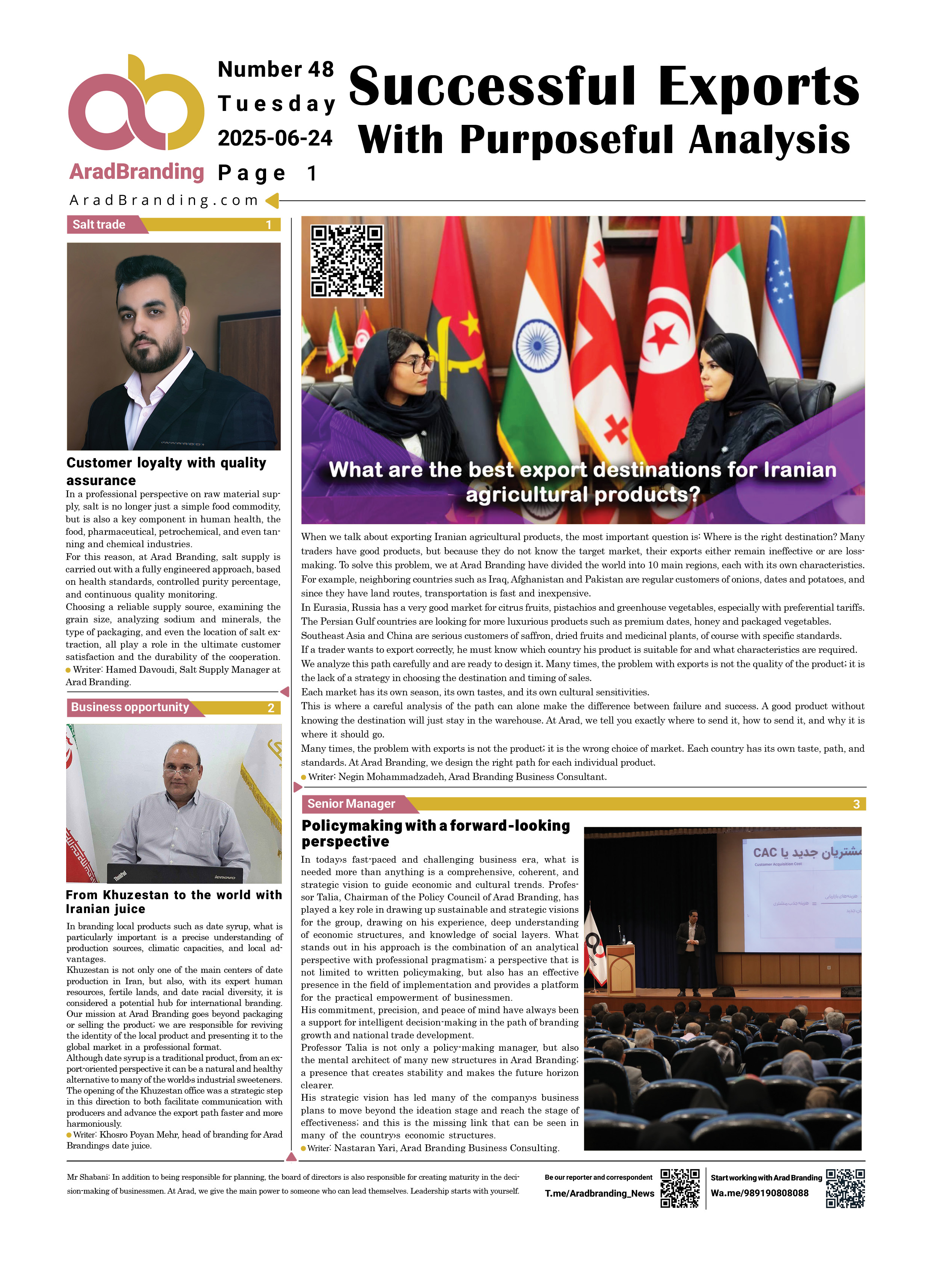 If you wish to submit content to be published in the Arad Branding newspaper, message the following Telegram ID: