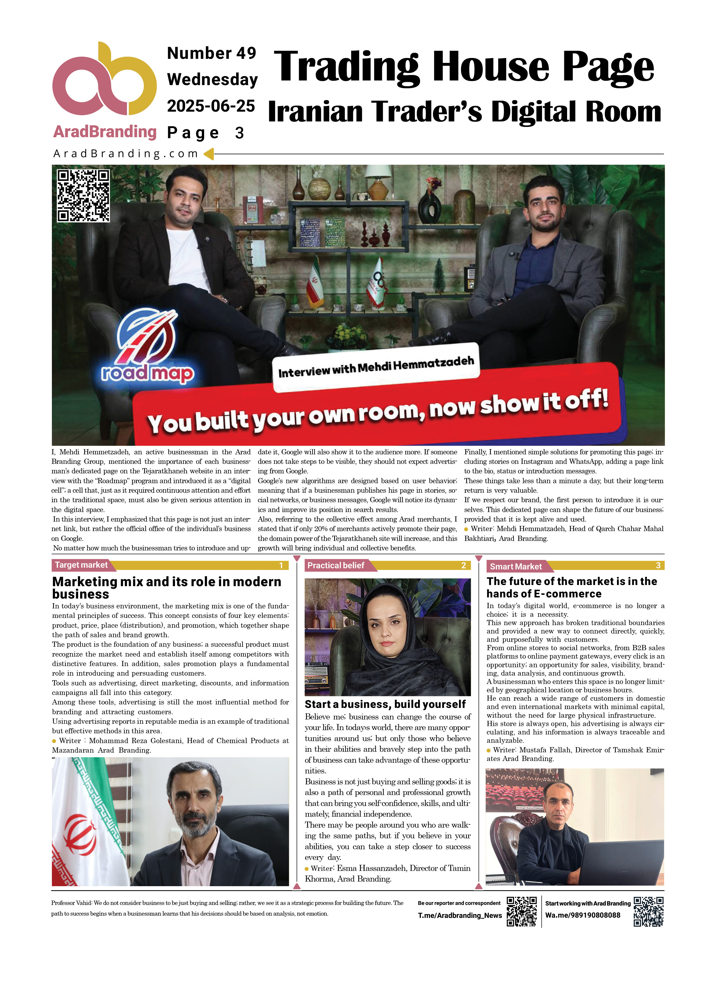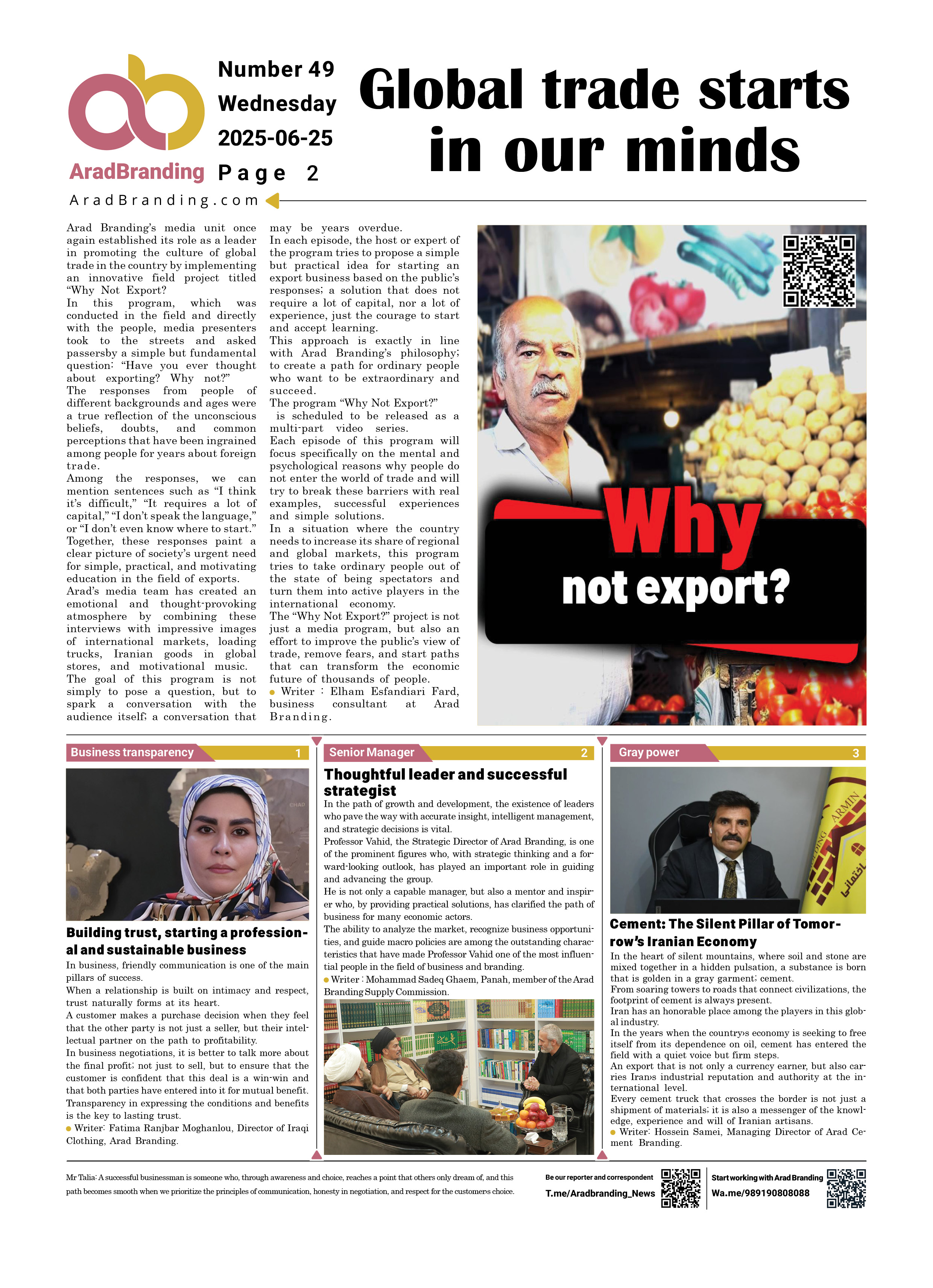 If you’d like to submit content for Arad Branding Newspaper, message the Telegram ID below.