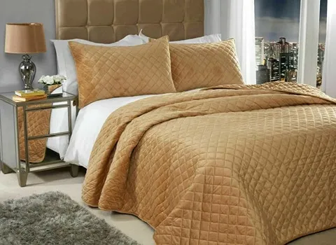 Ochre bedspread come in unique designs ranging from geometric to floral, woven with luxurious fabrics like cotton, mink and velvet.