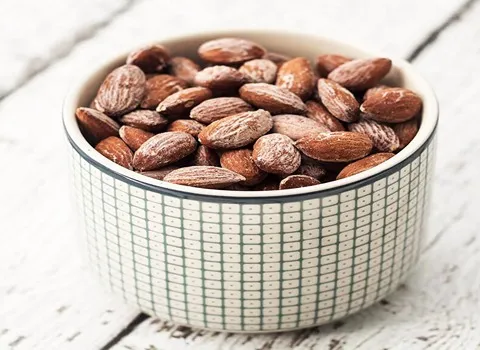 To elevate the taste experience further, a light sprinkling of salt is added to these roasted almonds, enhancing their natural flavors and creating a perfect balance of savory and nutty notes.