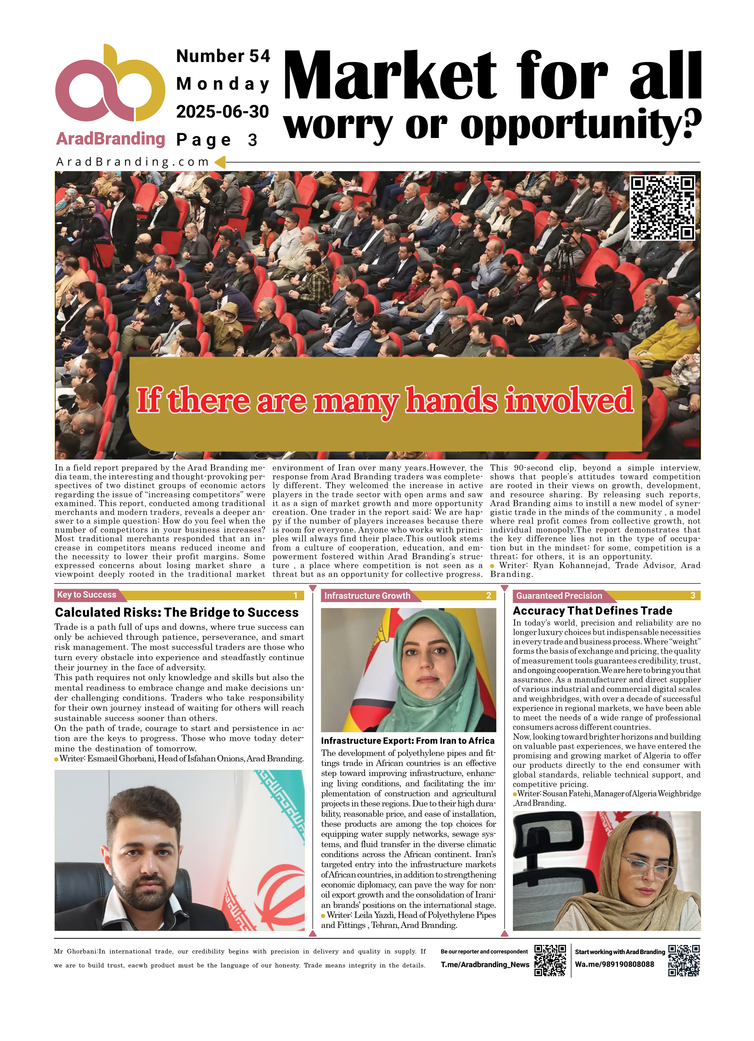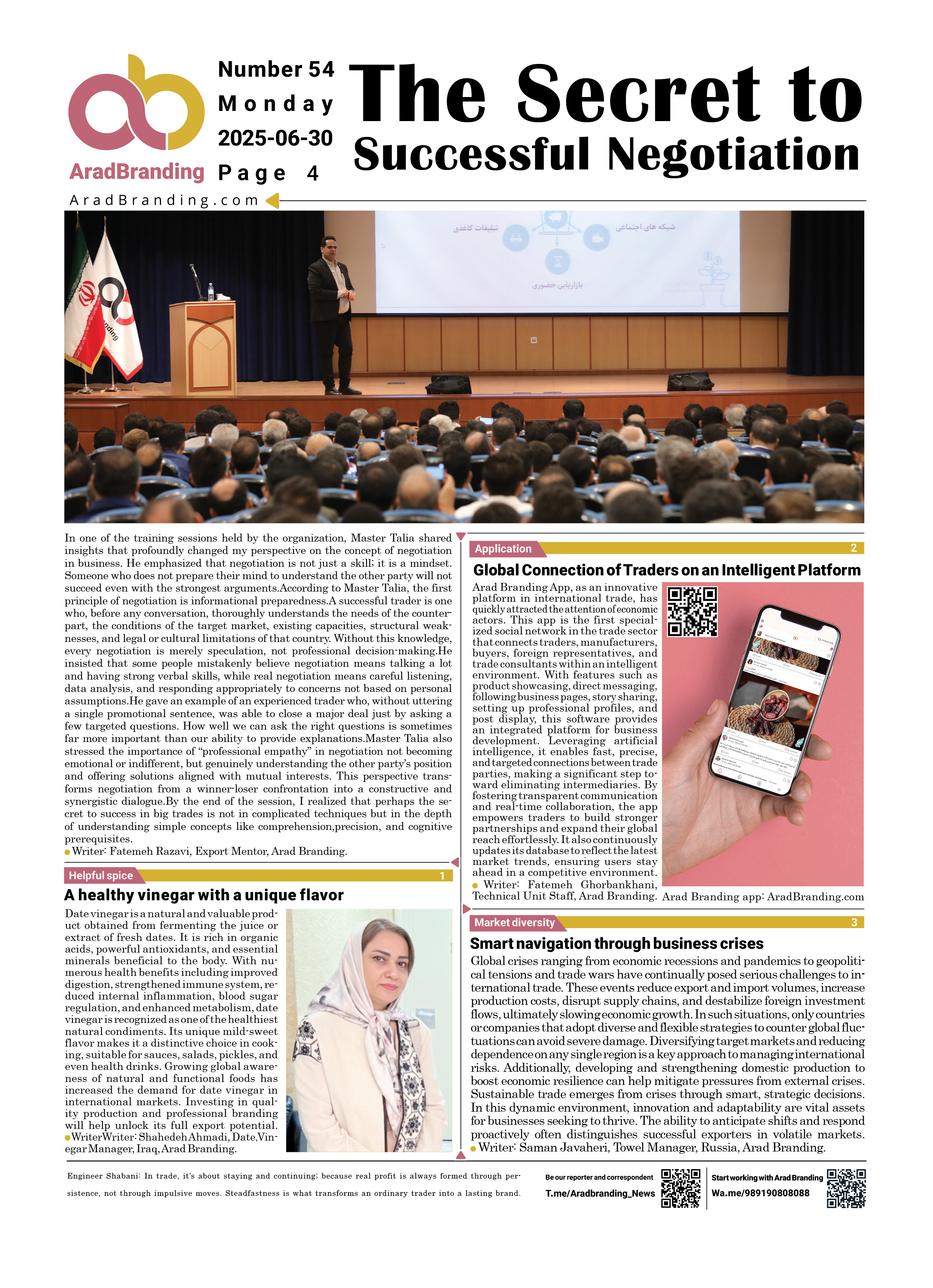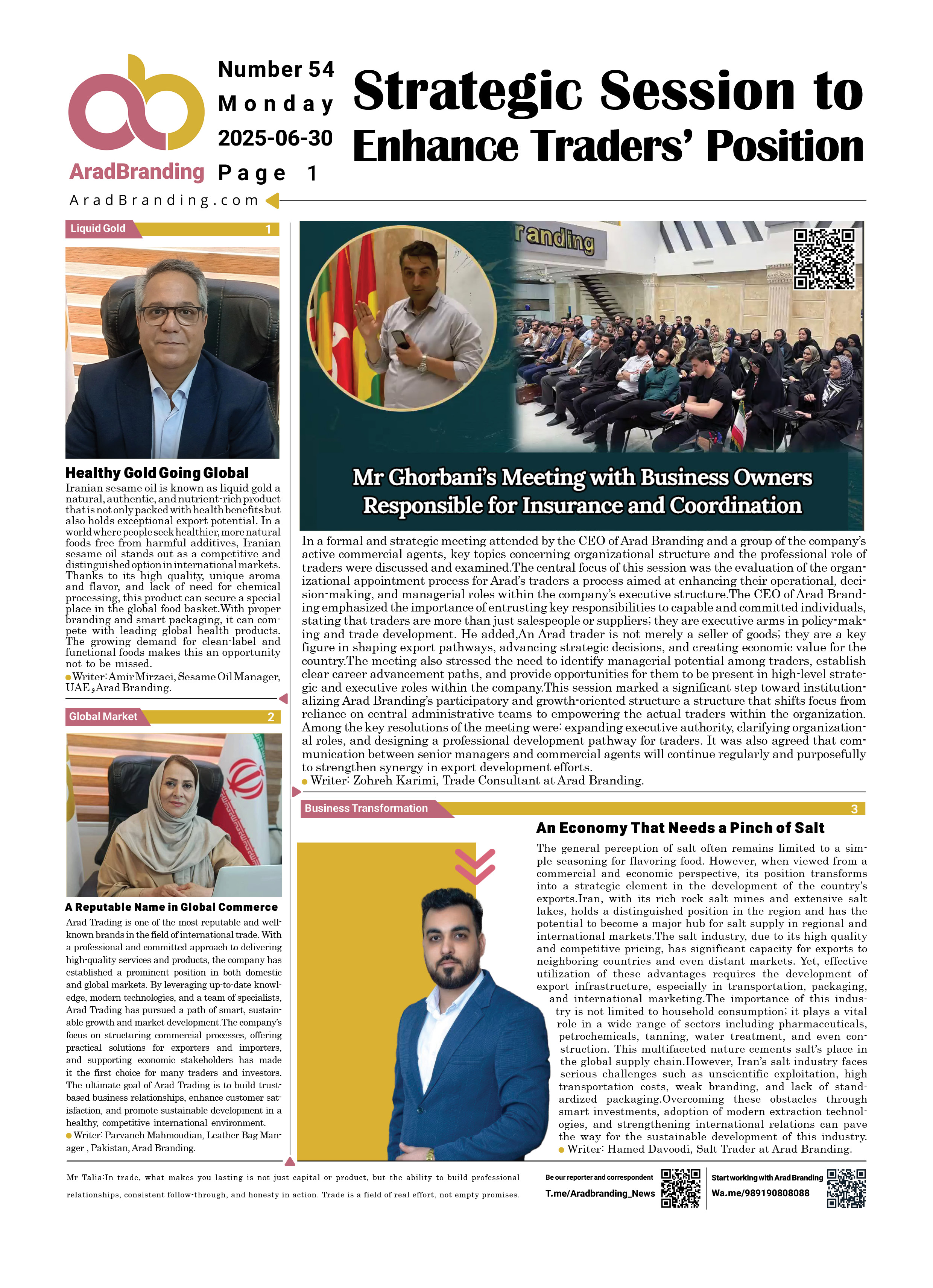 If you wish to submit content for publication in Arad Branding Newspaper, message the Telegram ID below.