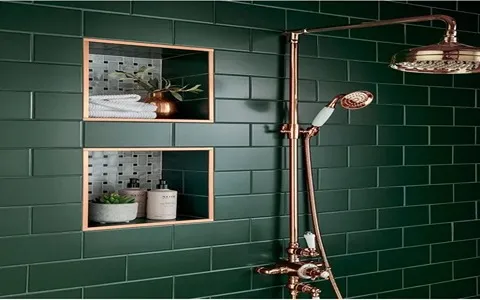 For a sleek and modern look, consider glossy green tiles that will reflect light and create a sense of openness in the room.