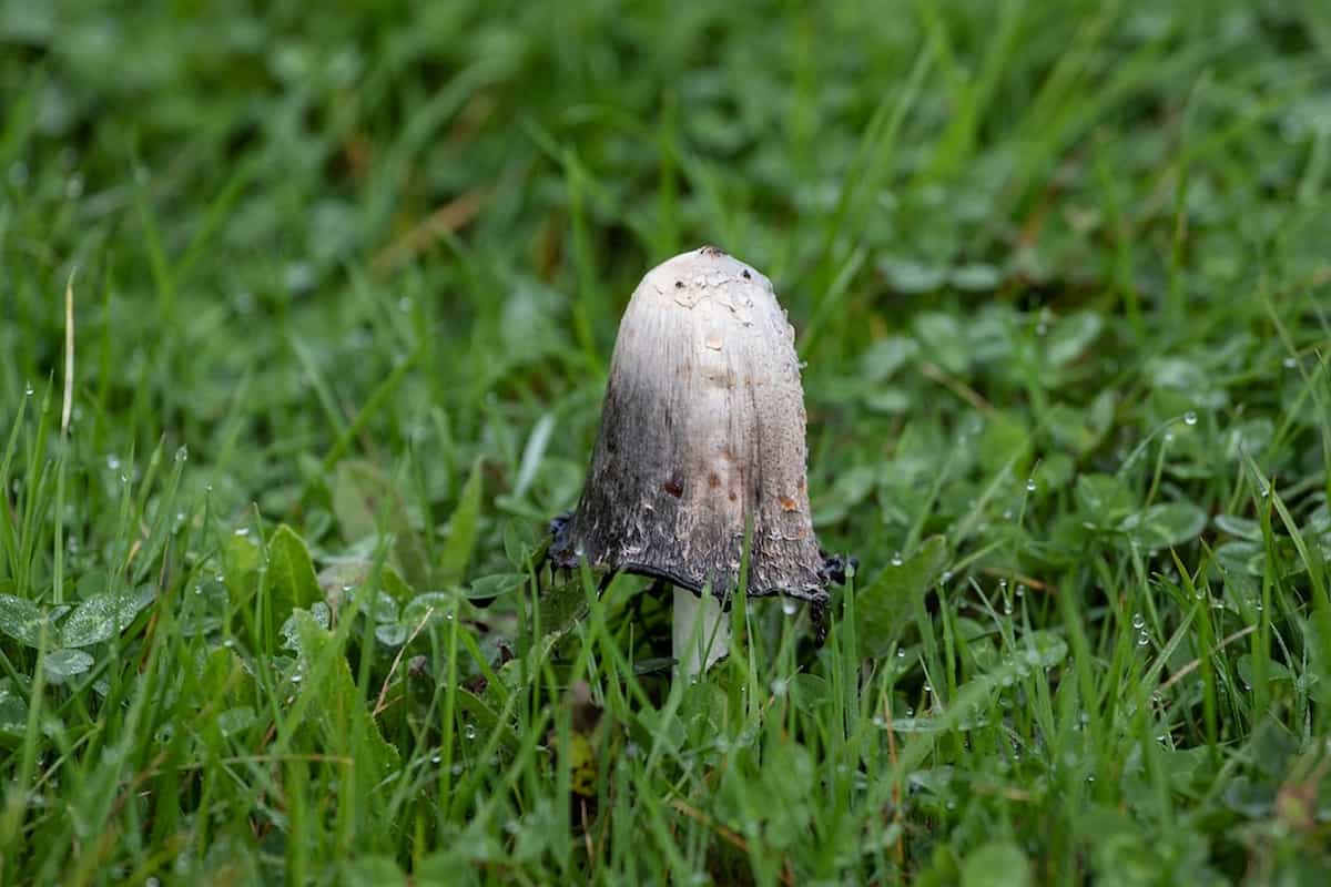 The shaggy mane mushroom, also known as the lawyer's wig mushroom or shaggy ink cap.