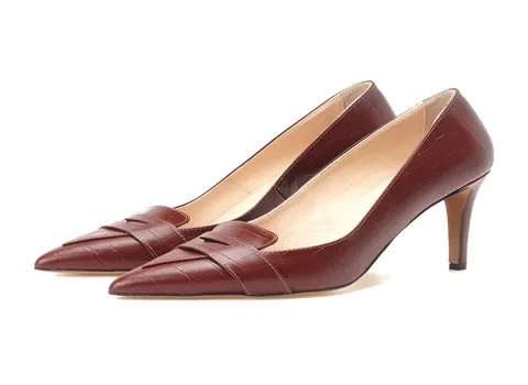 For a polished and professional look, pair a classic pair of brown leather pumps with a tailored suit or trousers.