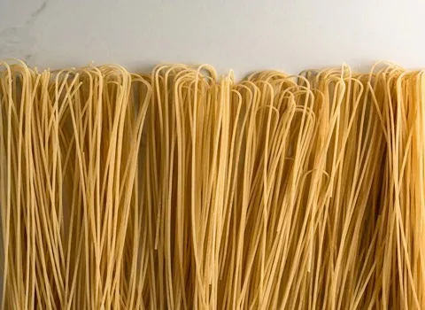 Made from durum wheat semolina, this type of pasta is known for its firm texture and ability to hold its shape during cooking, ensuring that each strand retains its integrity and bite.