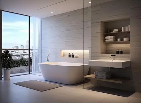 A luxurious white ceramic bathtub is the epitome of relaxation and sophistication, creating a focal point in any bathroom.