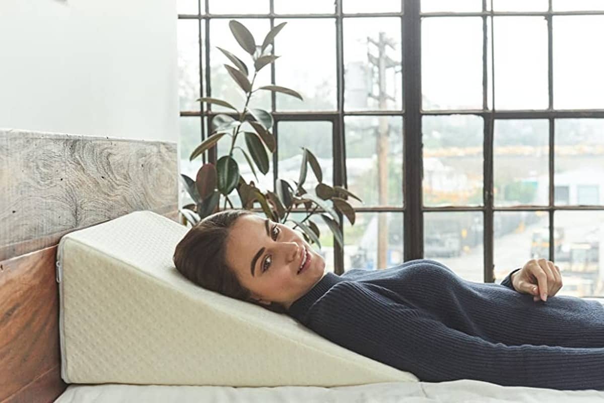 A wedge pillow can help promote proper spinal alignment and relieve pressure on your back, neck, and shoulders.