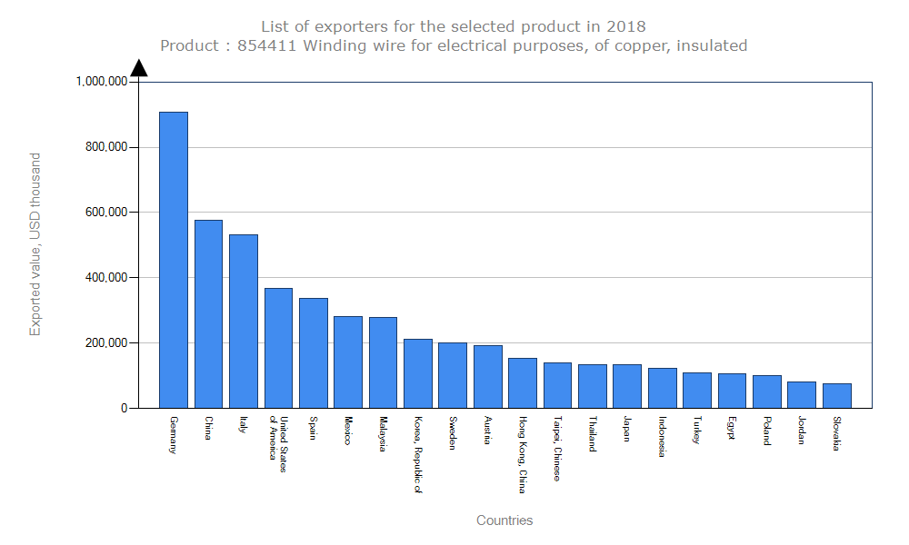 در صادرات : هدف شناسایی رقبا در بازار جهانی است. رقم کل صادرات : ۵,۷۳۰,۴۶۷,۰۰۰ دلار میزان رشد بازار براساس ارزش واحد در ۵ سال اخیر : ۲- درصد میزان رشد یکساله براساس ارزش واحد : ۴ درصد و میانگین فاصله از کشور وارد کننده : ۲,۴۹۳ کیلومتر می باشد. در واردات : هدف شناخت متقاضیان و پتانسیل ها در بازار جهانی است. رقم کل واردات: ۴,۹۶۹,۶۴۷,۰۰۰ دلار میزان رشد بازار براساس ارزش واحد در ۵ سال اخیر : ۰ درصد میزان رشد یکساله براساس ارزش واحد: ۹ درصد و میانگین فاصله از کشور صادر کننده : ۲,۵۰۸ کیلومتر می باشد. - بیشتر بخوانید: کابل مسی سه فاز زمینی