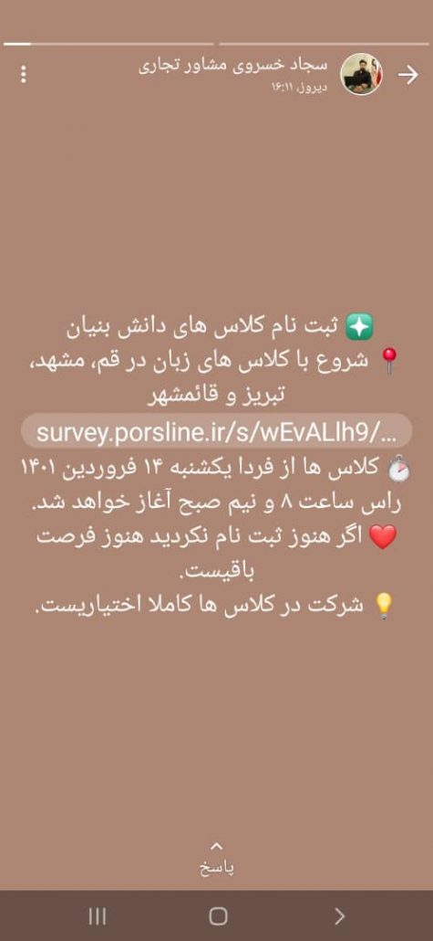 سجاد خسروی از پرسنل فروش از آغاز کلاس های زبان در شعبات مختلف مجموعه، خبر داد.
