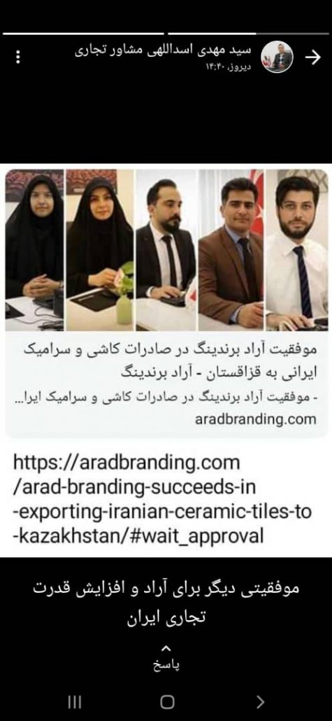 سید مهدی اسداللهی از مشاوران تجاری با انتشار تصویری، موفقیت مذاکره کنندگان صادراتی مجموعه را به اشتراک گذاشت.