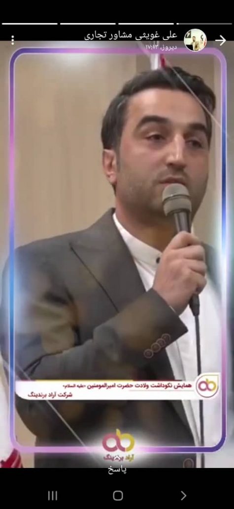 علی غویثی از مشاوران تجاری مجموعه با انتشار ویدئویی، رجز خوانی مدیر عامل محترم را به نمایش گذاشت.