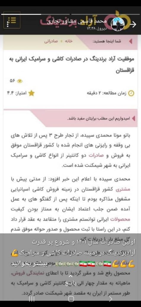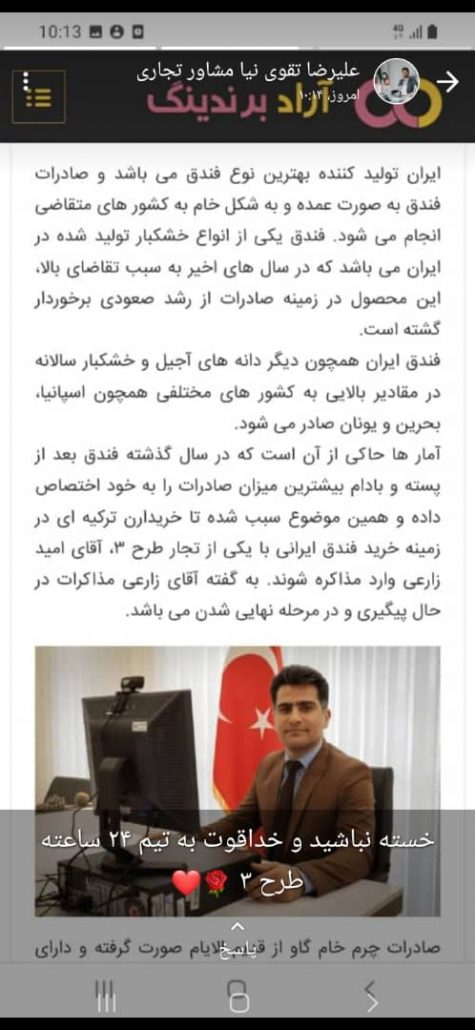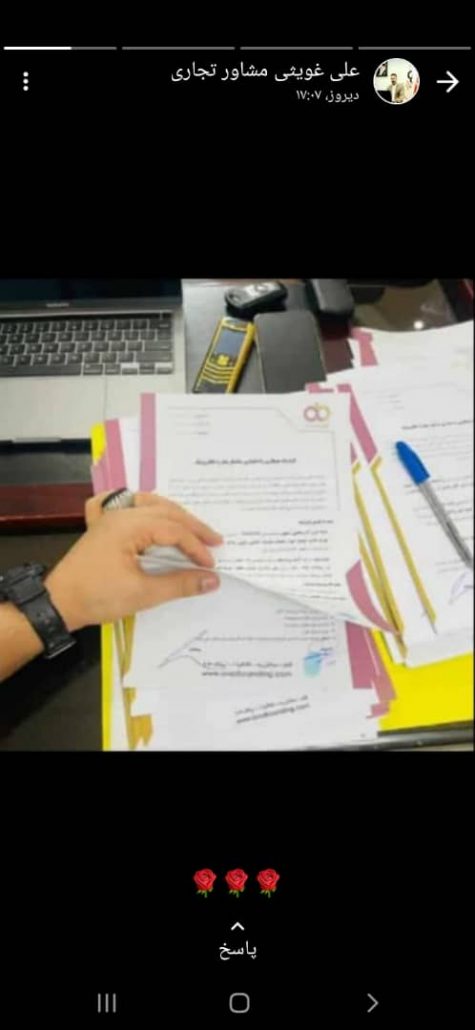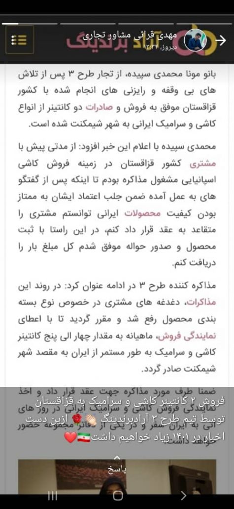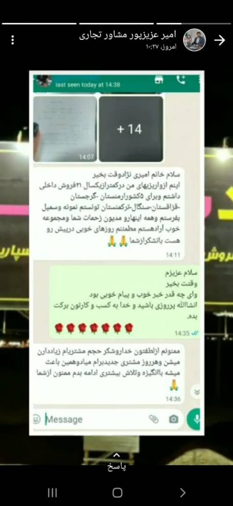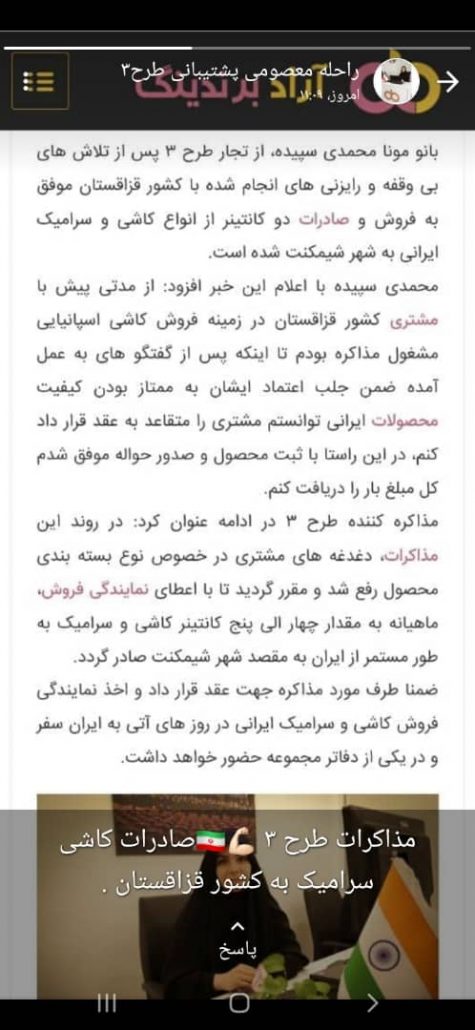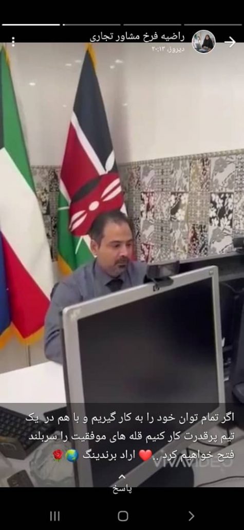 راضیه فرخ از دیگر مشاوران تجاری با انتشار تصویری، موفقیت یکی از تجار طرح سه را به تصویر کشید.
