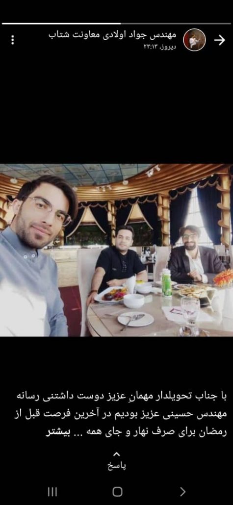 مهندس جواد اولادی معاونت شتاب مجموعه از یک ناهار صمیمی کنار دو تن از پرسنل، تصویری را منتشر نمود.