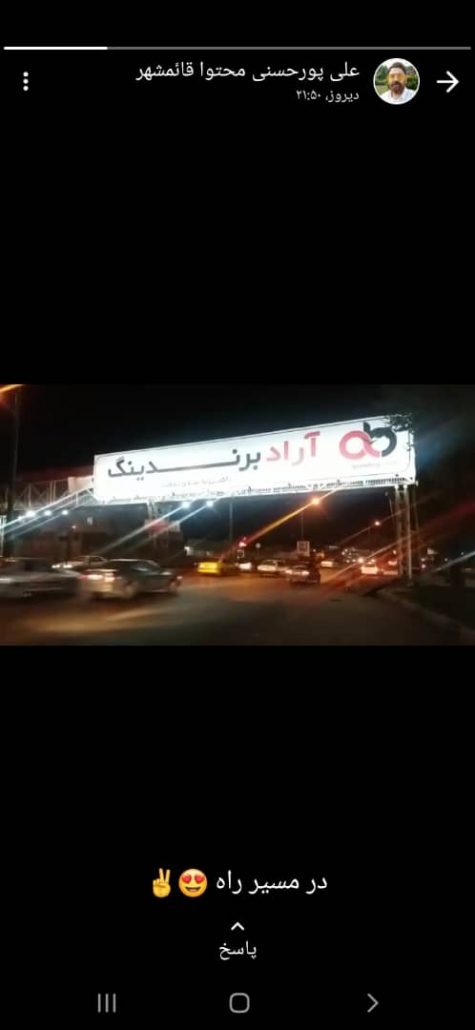 علی پور حسنی از همکاران بخش محتوا با انتشار تصویری از بنر مجموعه در سطح شهر قائمشهر، رو نمایی کرد.
