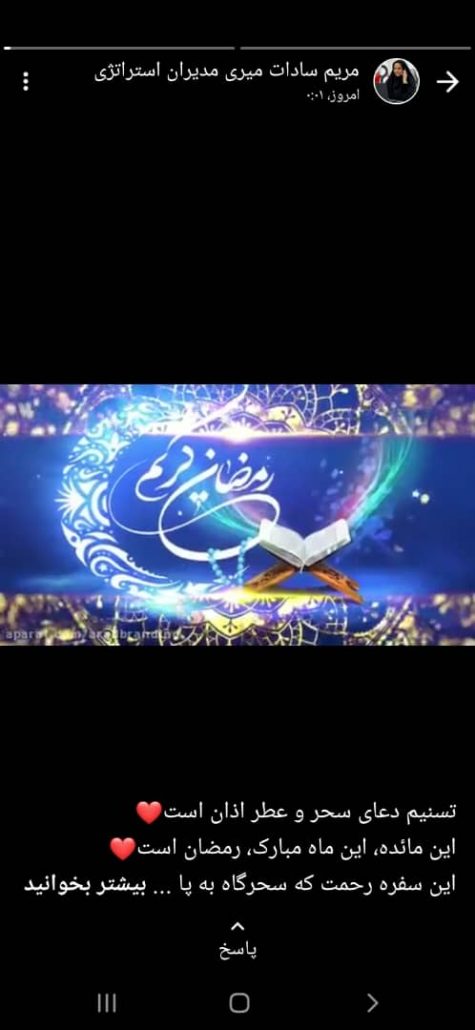 زهرا عبداللهی از پشتیبانان تخصصی طرح 3 با انتشار کلیپ زیبایی، فرا رسیدن ماه مبارک رمضان را تبریک گفت.
