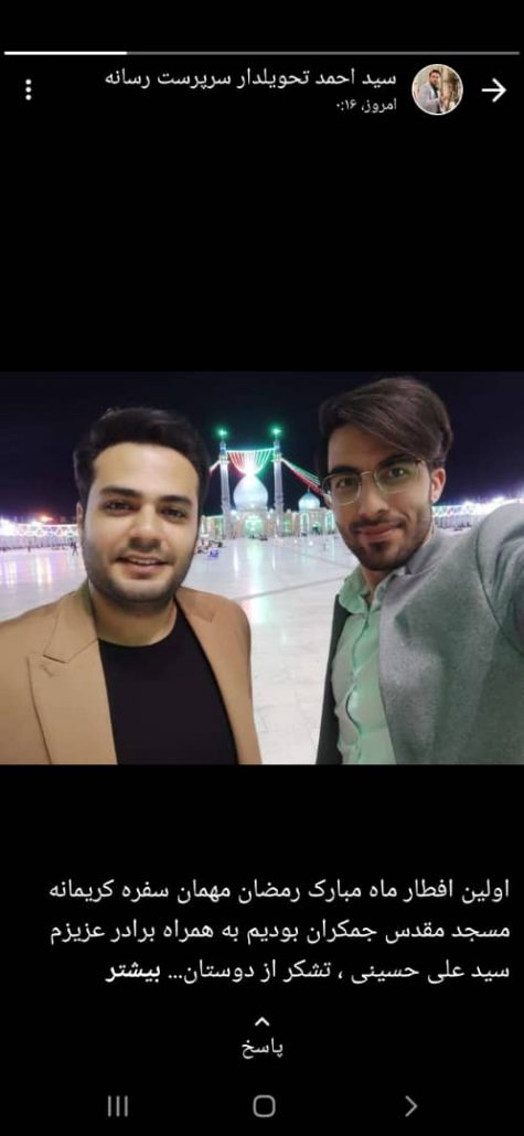 سید احمد تحویلدار سرپرست واحد رسانه با انتشار تصویری، اولین افطاری خود را در مسجد مقدس جمکران، به اشتراک گذاشت.