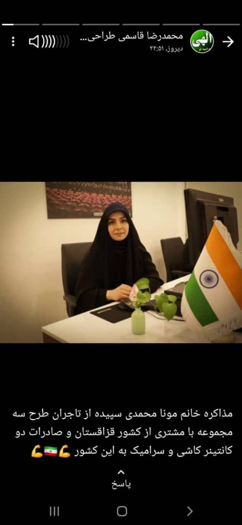 محمد رضا قاسمی از همکاران واحد طراحی سایت، یکی دیگر از مذاکره کنندگان صادراتی را معرفی نمود.