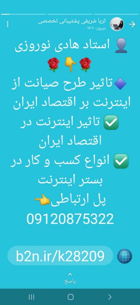ثریا شریفی از دیگر پرسنل پشتیبانی تخصصی با انتشار خبری از استاد هادی نوروزی، تاثیر طرح صیانت بر اقتصاد ایران را بازگو کرد.