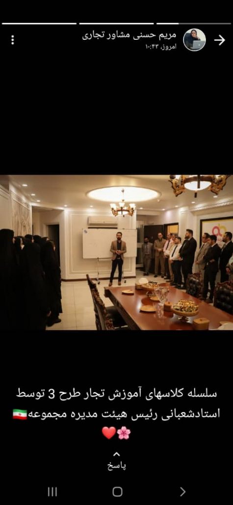 مریم حسنی مشاور تجاری با انتشار تصویری از آغاز کلاس های تجار طرح سه در سال جدید، خبر داد.