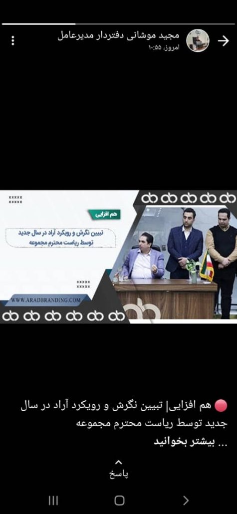 جمشید دیانتی از دیگر مشاوران تجاری، در قالب وضعیتی قسمتی از تاریخچه کاری مجموعه را منتشر نمود.