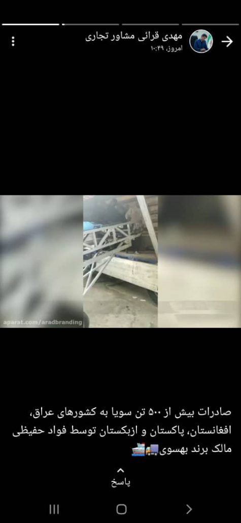 مهدی قرائی از دیگر پرسنل فروش با انتشار وضعیتی از موفقیت یکی از تجار در حوزه سویا، خبر داد.