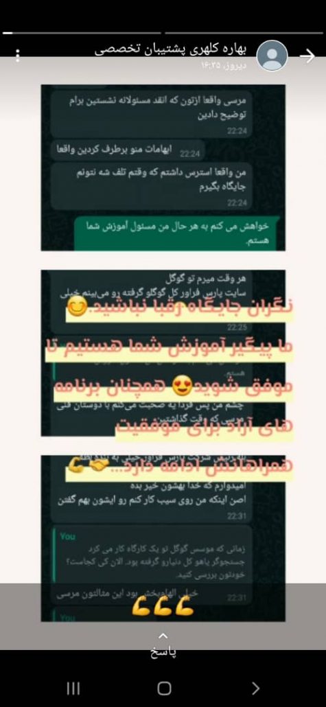 مریم امیری نژاد از دیگر پشتیبانان تخصصی با انتشار تصویری، یکی از تاجران مستقل مجموعه را معرفی نمود.