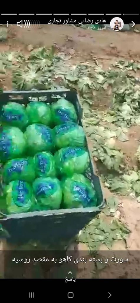 هادی رضایی از دیگر پرسنل فروش، در خصوص ارسال بار کاهو به مقصد روسیه توسط یکی از تجار، وضعیتی را منتشر کرد.