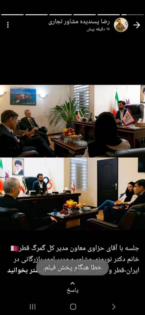 رضا پسندیده از مشاورین تجاری با انتشار تصاویری، از نشست مدیر کل گمرک قطر با رئیس هیئت مدیره مجموعه خبر داد.