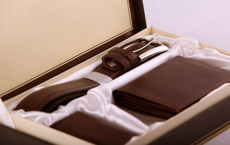 برخی از ستهای چرم مردانه که به عنوان هدیه در نظر گرفته می شود علاوه بر کمربند و کیف پول شامل کراوات و نیز جا کارتیهایی از جنس چرم هستند.