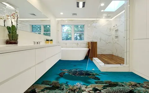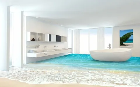کاشی سه بعدی را تولید کنندگان به گونهای برای دستشویی طراحی می کنند که فضا را بزرگتر نشان می دهد.