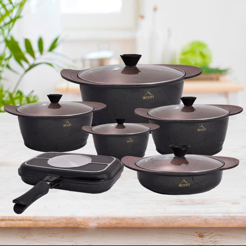 سرویس های قابلمه آگرین معمولا دارای 4 عدد قابلمه با سایز های مختلف و یک عدد تاوه است.