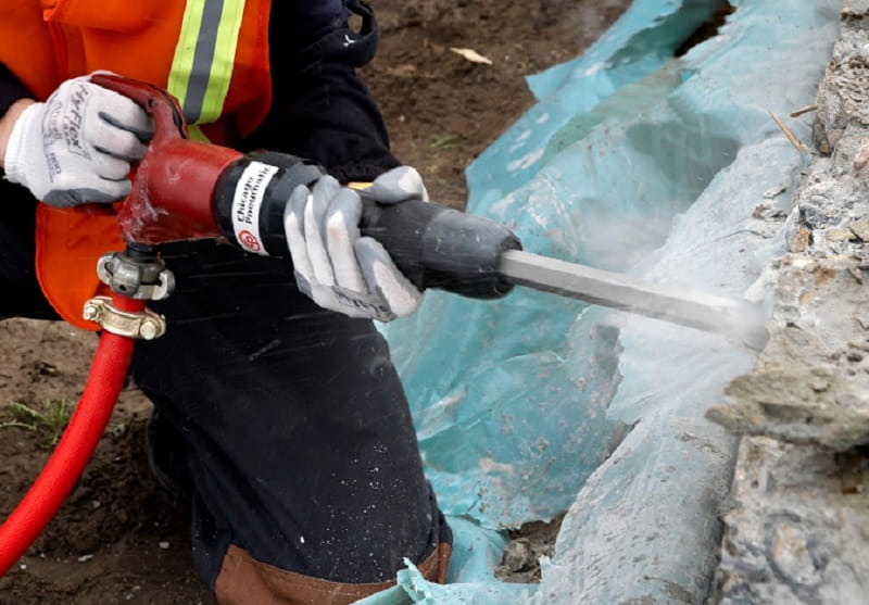 برای این که با چکش بادی و چکش برقی سنگین یک قسمت را تخریب کنید فقط نیاز است که دستگاه را روشن کنید و به صورت عمودی به آن نقطه ای که می خواهید عمل تخریب روی آن انجام دهید فشار دهید دستگاه با ضربات پیاپی که به آن قسمت وارد می کند باعث تخریب می شود.