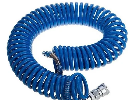شیلنگ فنری پمپ باد همانطور که از اسمش هم پیداست، فنری شکل می باشد و به دلیل شباهت فنر آن به سیم تلفن، به شیلنگ تلفنی نیز معروف است.