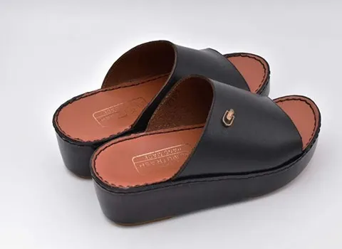 دمپایی عربی المطراش که قسمت زیره آن طبی است و رویه آن پوششی از چرم که اغلب در مدل مردانه تولید و با کیفیت می باشد.