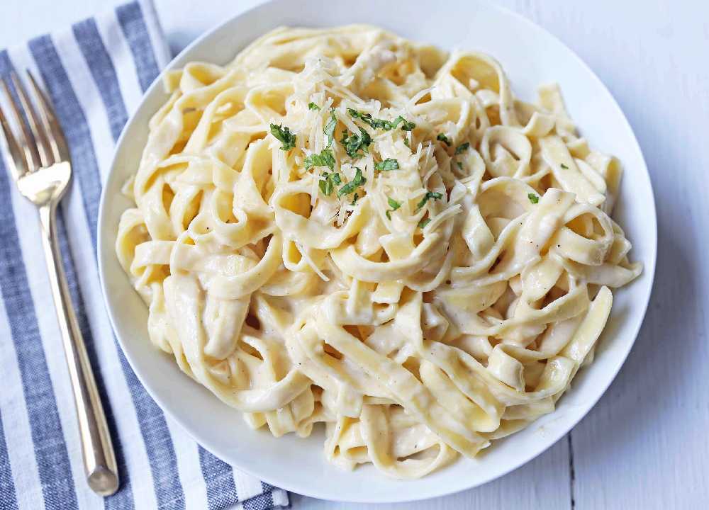 پاستا آلفردو بدون خامه یکی از خوشمزه ترین غذا هایی می باشد که برای افرادی که دارای رژیم های غذایی هستند نیز مناسب می باشد.