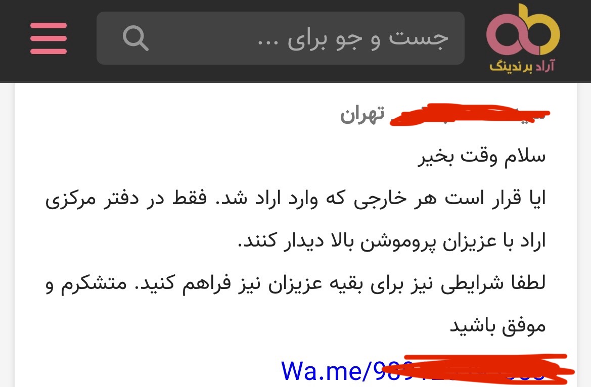 ایشان به من گفتند تا به همه آرادی ها با چنین مضمونی بگویم که ایشان مدیر عامل آراد هستند.