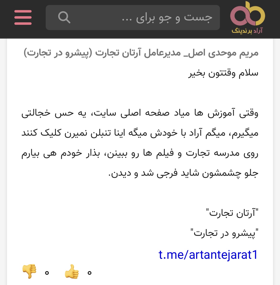 چند روزی می شود که آموزش های مدرسه تجارت، پادکست های تجاری و مکتب تجارت و راستی را در بین خبرهای آراد قرار دادیم.