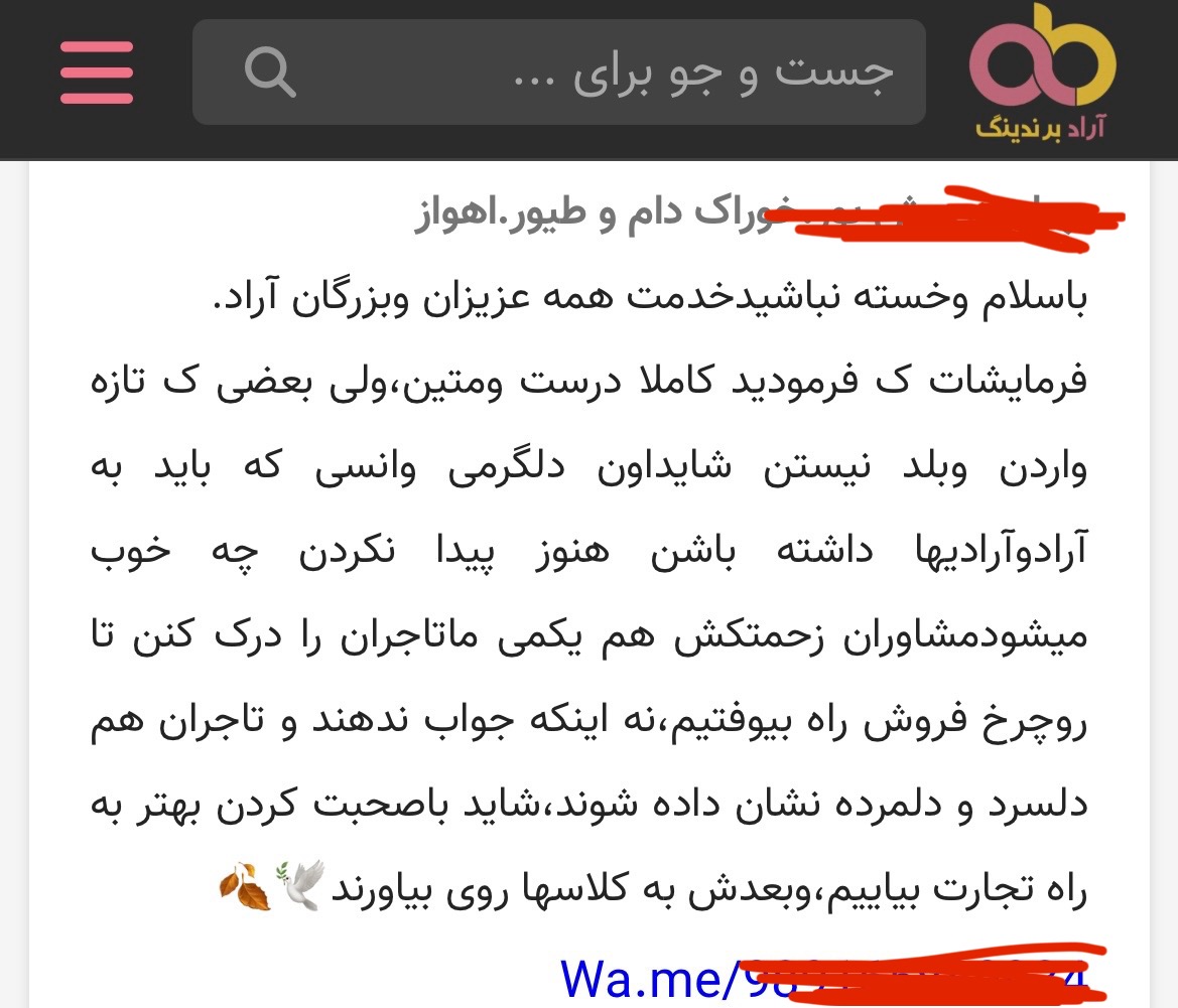 ذات تجارت با آراد به این صورت است که مگس ها نمی مانند، عجول ها نمی مانند، بزن در روها نمی مانند، کلاهبردارها نمی مانند، دغلبازها نمی مانند.