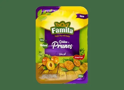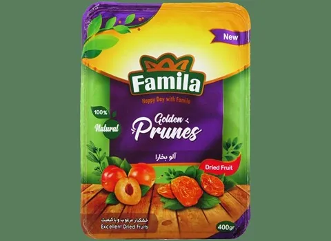 آلو بخارا فامیلا از میوه های تازه و شیرین آلو بخارا تهیه و فرآوری می شود که به علت عرضه به صورت بسته بندی کیفیت بالایی دارد.
