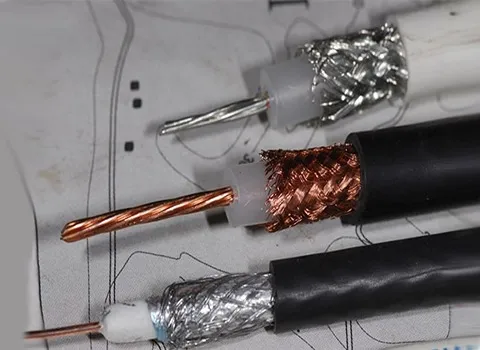 سیم کابل انتن چند رشتهای بوده، هادی از جنس مس یا آلومینیوم دارد، مس توسط لایه آلومینیوم احاطه شده تا در برابر نویز مقاوم باشد.