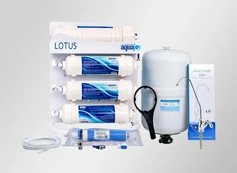 دستگاه تصفیه آب خانگی آکواجوی مدل لوتوس، کاربردی ترین برند دستگاه تصفیه آب است که تمامی قطعات تشکیل دهنده آن از نوع اصل هستند.
